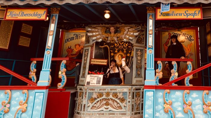 Seit 1894 dreht sich die Hexenschaukel auf dem Münchner Oktoberfest. Sie verschaukelt also seit über 130 Jahren die Gäste, die sich in sie hineinwagen. Hübsch ist sie anzusehen, auch nach so langer Zeit, denn sie wird liebevoll von ihren Betreibern gepflegt und gehegt.